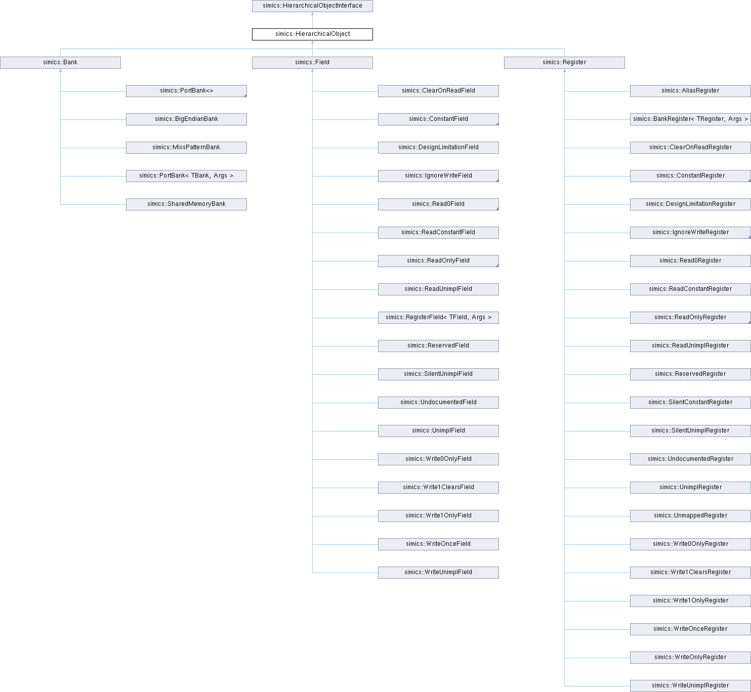 The HierarchicalObject class serves as a base class for objects used in bank register modeling. A register bank contains registers, and each register can contain fields. This class provides common functionality and interfaces for these hierarchical objects.