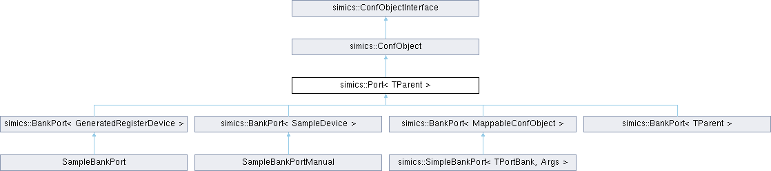 A class inherited the ConfObject class can be registered as a port object. A port object is a child object of a parent object, which is created automatically together with its parent object. This class provides utilities to access the parent object and the index of the port object array.