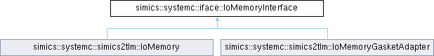 Implemented in simics::systemc::simics2tlm::IoMemory, and simics::systemc::simics2tlm::IoMemoryGasketAdapter.