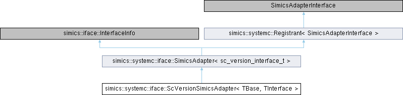 Public Member Functions inherited from simics::systemc::iface::SimicsAdapter< sc_version_interface_t > | |