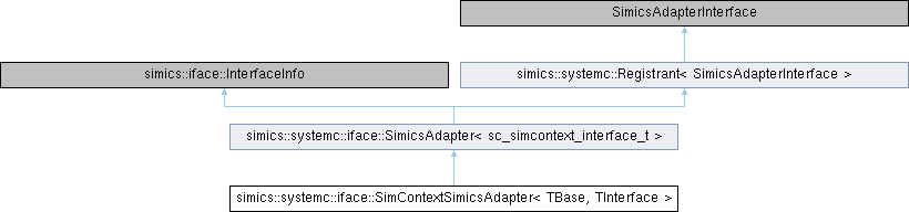 Public Member Functions inherited from simics::systemc::Registrant< SimicsAdapterInterface > | |