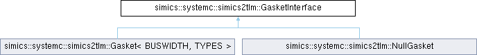Interface used by simics2tlm gaskets, implemented by Gasket base class. More...