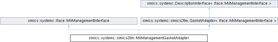 Public Member Functions inherited from simics::systemc::simics2tlm::GasketAdapter< iface::MiiManagementInterface > | |