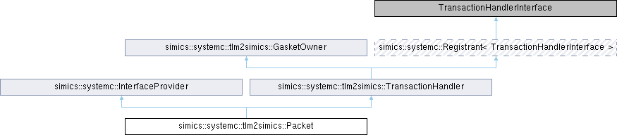 Public Member Functions inherited from simics::systemc::Registrant< TransactionHandlerInterface > | |