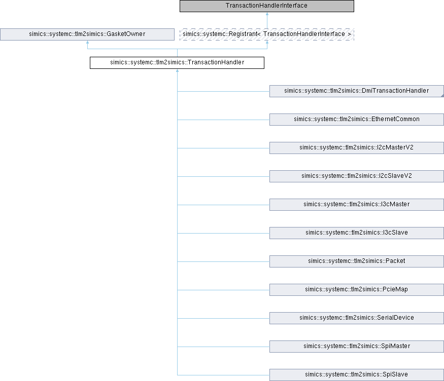 Public Member Functions inherited from simics::systemc::Registrant< TransactionHandlerInterface > | |
