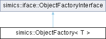 Public Member Functions inherited from simics::iface::ObjectFactoryInterface | |